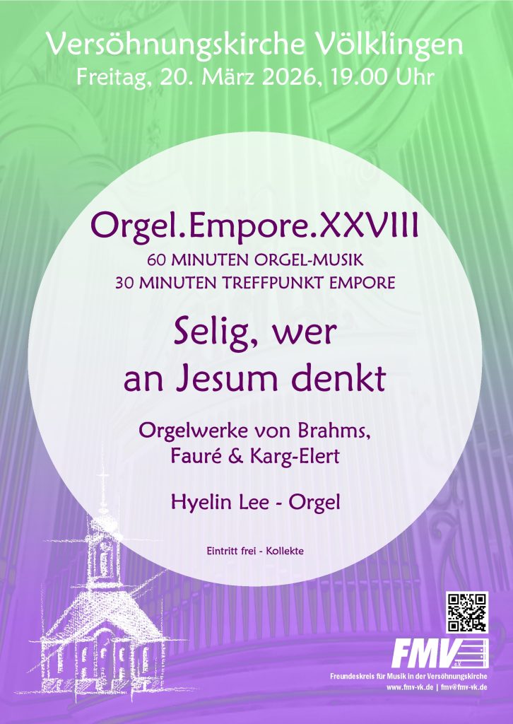 ♦ Freitag, 20. März 2026, 19.00 Uhr: Empore XXVIII – Hyelin Lee an der Orgel